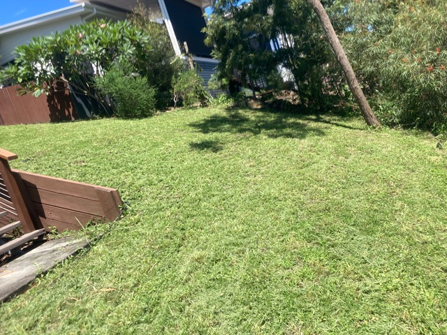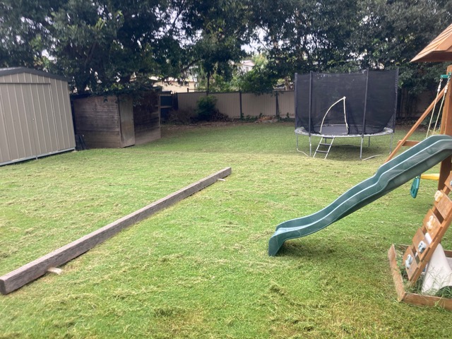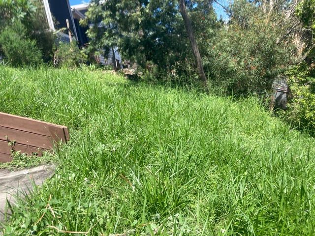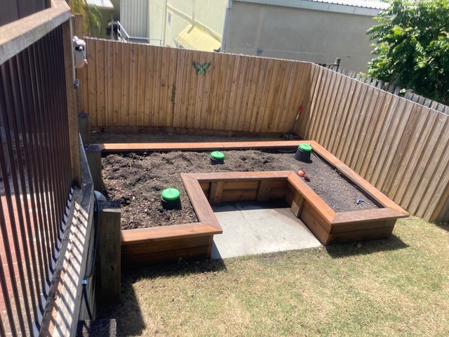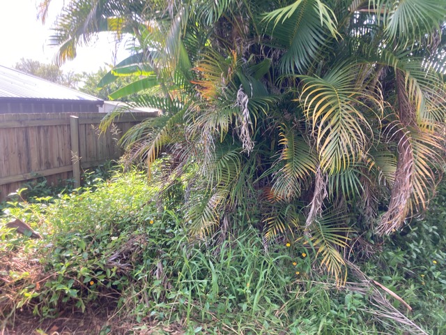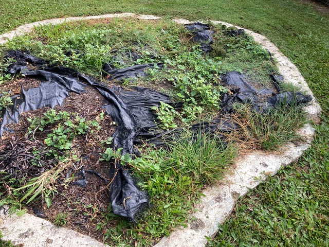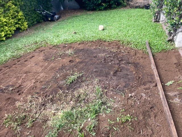 AFTER Removing concrete, plastic and weeds and filling with soil